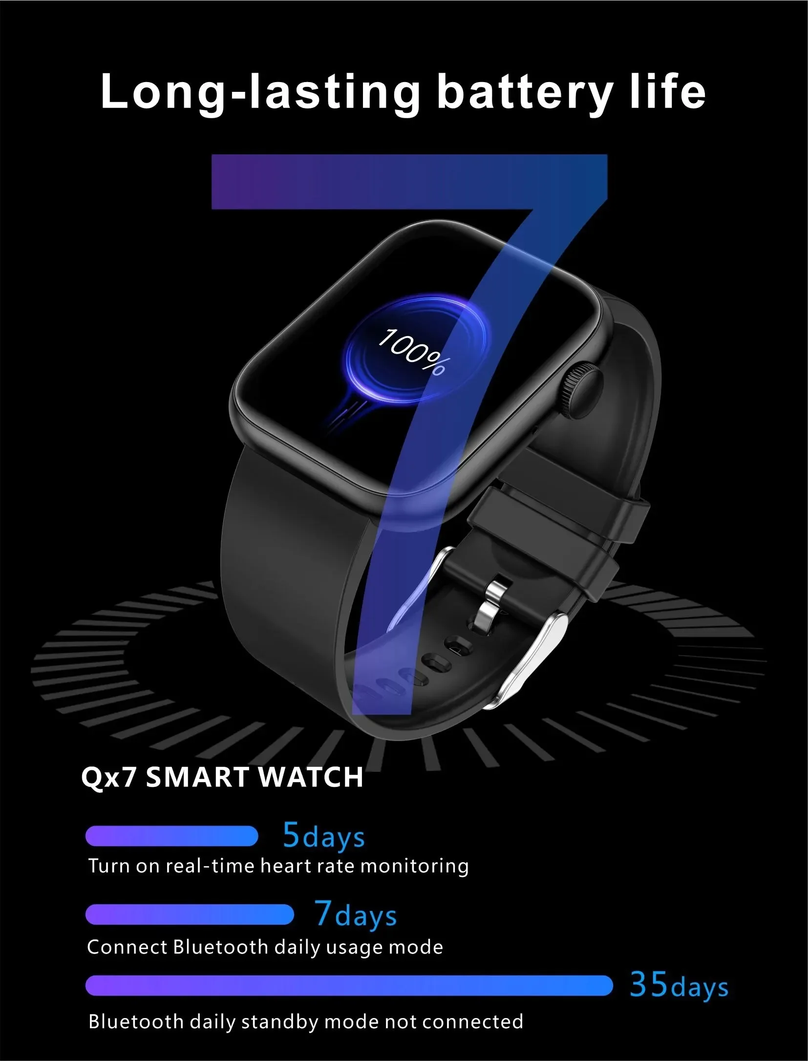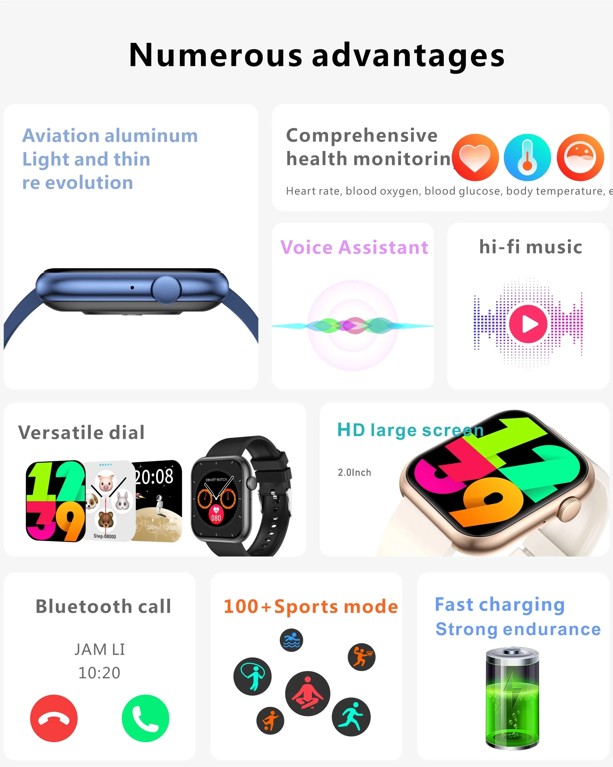 • Connectivité Avancée : Équipée du Bluetooth 5.3, elle permet de passer et de répondre à des appels directement depuis votre poignet, tout en gérant vos notifications (messages, rappels).